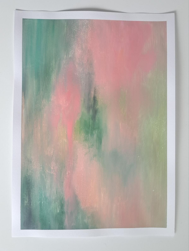 Abstrakti akryylimaalaus. Tehty vahvalle, vesiväri- ja akryylimaalipaperille.